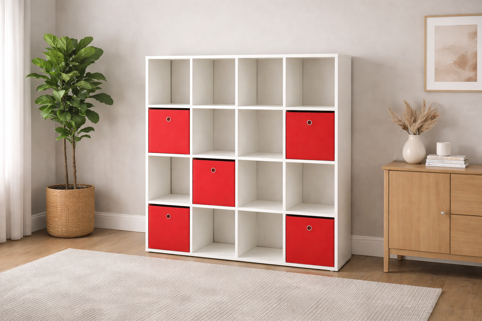 Regał Obeliks wyróżnia się minimalistyczną formą i neutralnym, białym wykończeniem, dzięki czemu pięknie rozjaśnia wnętrze i optycznie powiększa przestrzeń. Jego nowoczesny styl sprawia, że łatwo dopasujesz go do różnych aranżacji — od klasycznych, przez skandynawskie, po nowoczesne i minimalistyczne pomieszczenia.