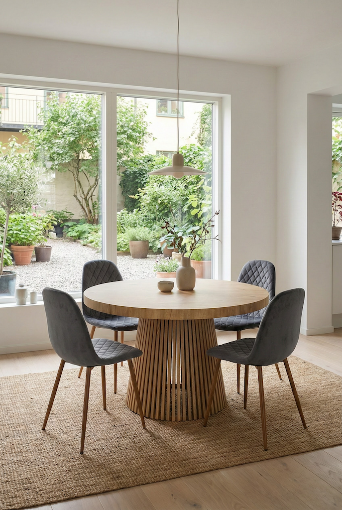 Miękkie, tapicerowane siedzisko zapewnia wygodę podczas codziennych posiłków, rodzinnych spotkań czy długich rozmów przy stole. Odpowiednio wyprofilowane oparcie wspiera plecy, dzięki czemu krzesło sprawdza się również podczas dłuższego siedzenia.