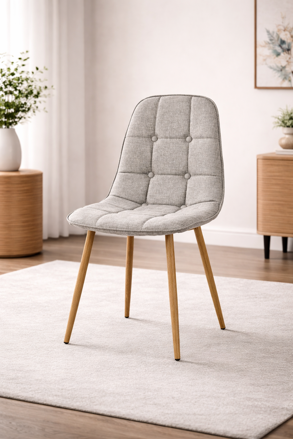 Krzesło Moris to harmonijne połączenie wygody i ponadczasowego designu, które doskonale wpasuje się w aranżacje jadalni, kuchni, salonu czy domowego gabinetu. Miękka, beżowa tapicerka subtelnie podkreśla elegancję mebla, natomiast stabilne nogi w kolorze dębu miodowego dodają mu ciepła i naturalnego charakteru.