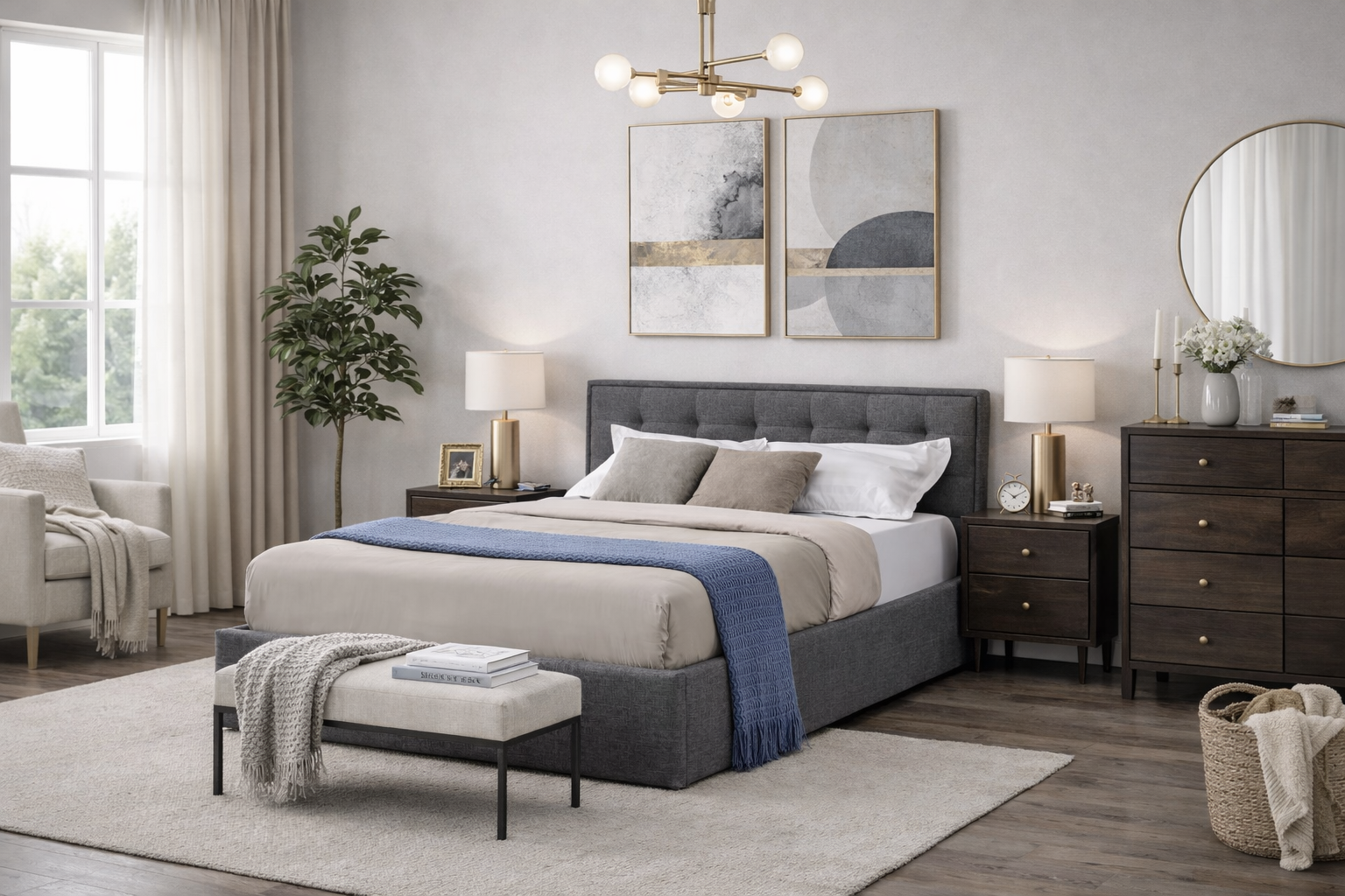 Łóżko Szarik doskonale sprawdzi się jako centralny element sypialni — zarówno w mniejszych przestrzeniach, gdzie liczy się funkcjonalność i optymalne wykorzystanie miejsca, jak i w większych sypialniach aranżowanych w stylu nowoczesnym, skandynawskim czy minimalistycznym. Neutralna kolorystyka ułatwia dopasowanie do dodatków, tekstyliów i innych mebli.