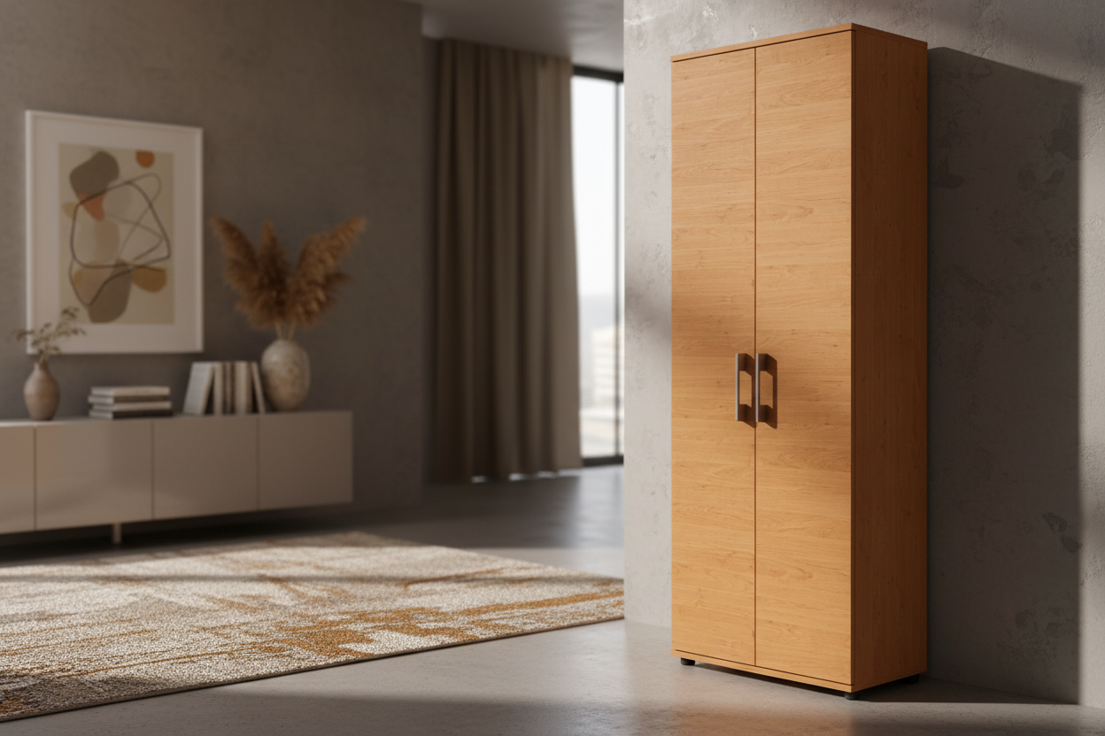 - Funkcjonalność: Dwie pełne drzwi chronią zawartość przed kurzem i zapewniają estetyczny wygląd przechowywanych rzeczy.